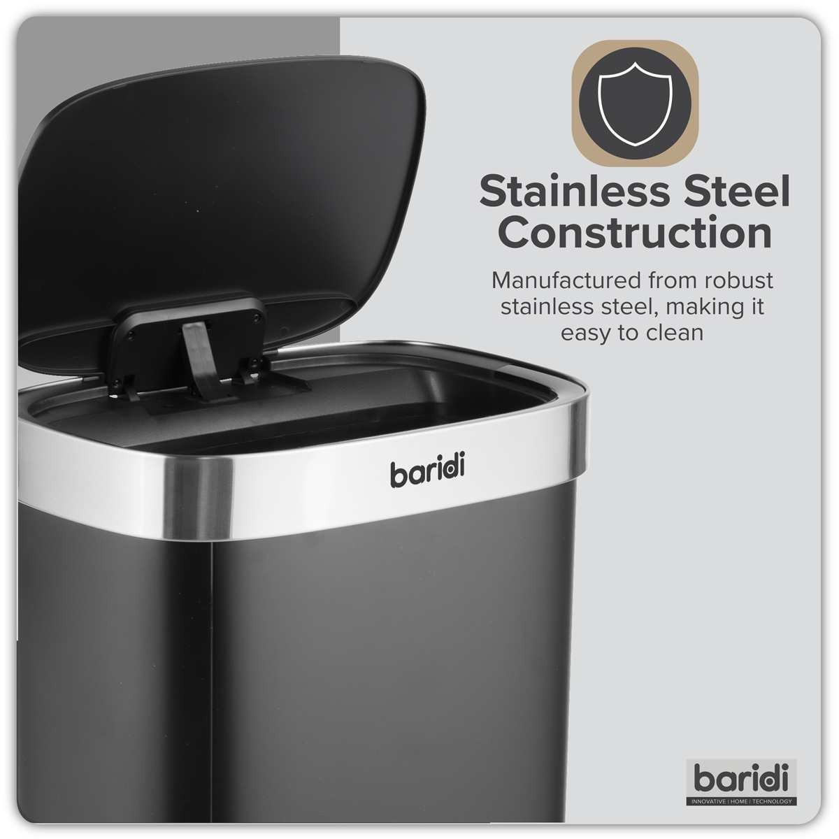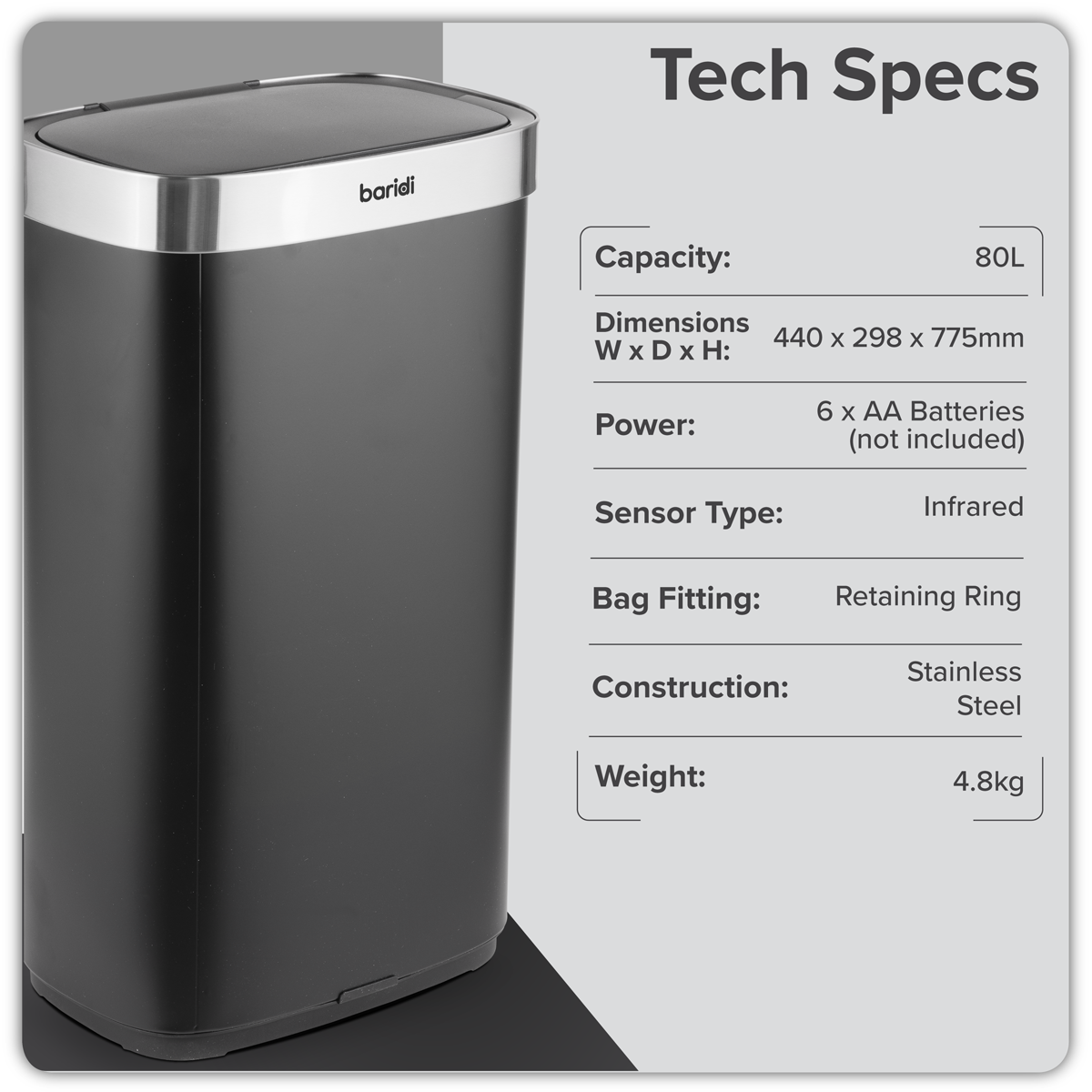 Sealey DH283 - Sensor Bin 80L - Black/Stainless Steel