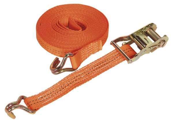 • Manufactured from polyester webbing with stitched reinforcement around hooks. • Suitable for securing loads and tarpaulins onto flat-beds or trailers and for general load restraint. • Ratchet mechanically tensions the webbing using a simple drum and ratchet mechanism providing superior load restraint. • Load Test: 2000kg. • Webbing Length: 6mtr. • Model No. TD2006J