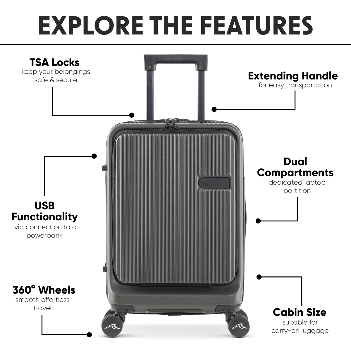 Dellonda DL157 - Dellonda Cabin Size Luggage with Laptop Compartments & Dual TSA Lock 20"
